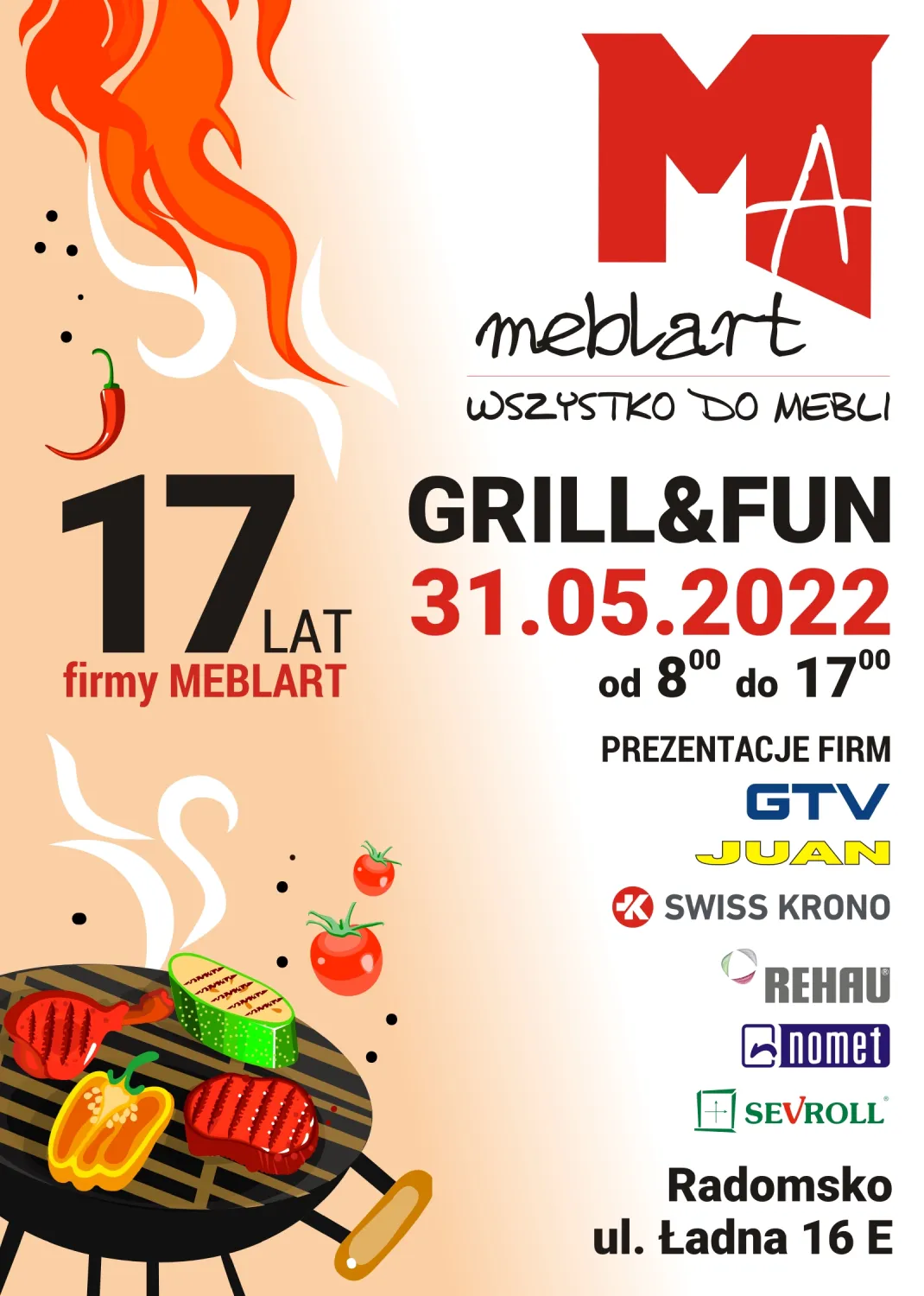 Drodzy Klienci, Za parę dni będziemy obchodzić 17 lat Firmy #MEBLART w branży stolarskiej Z tej okazji przygotowaliśmy dla Was niespodziankę W tym dniu na WSZYSTKIE akcesoria będzie obowiązywał rabat -4%* Oprócz grilla będą czekać na Was stoiska znanych firm tj.: GTV Furniture Accessories JUAN wszystko do Mebli SWISS KRONO REHAU Nomet Toruń Sevroll Serdecznie zapraszamy! *promocja nie obowiązuje na płyty, blaty oraz fronty akrylowe