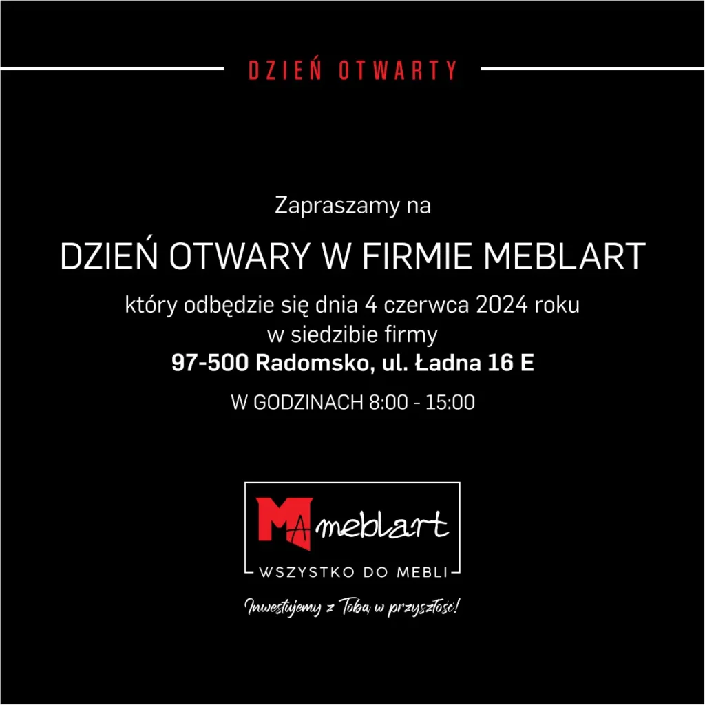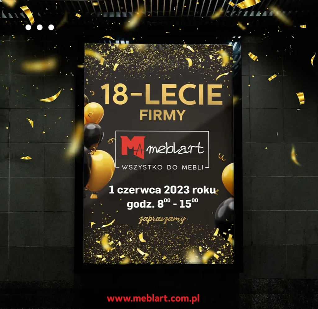 Drodzy klienci! Zapraszamy Was na naszą 18tkę do Meblart !  Czekają Was liczne atrakcje, promocje i rabaty nawet do -50%! 1.06.2023  8:00-15:00  ul. Ładna 16E ,